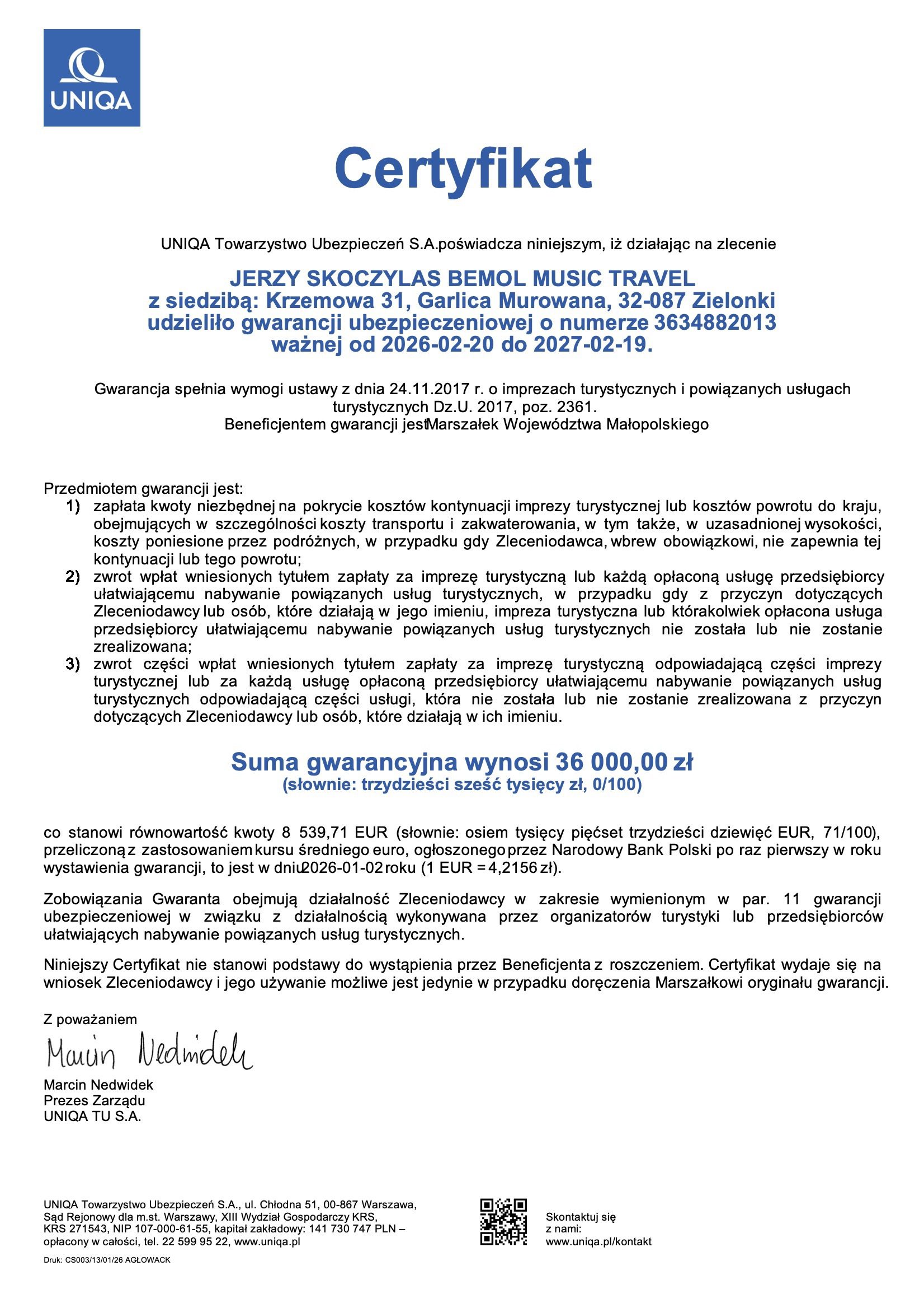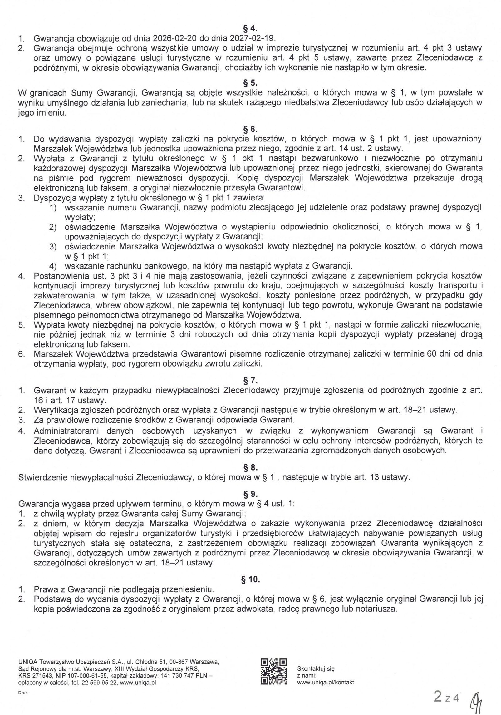 – gwarancja ubezpieczeniowa organizatorów turystyki firmy UNIQA -> POBIERZ TUTAJ