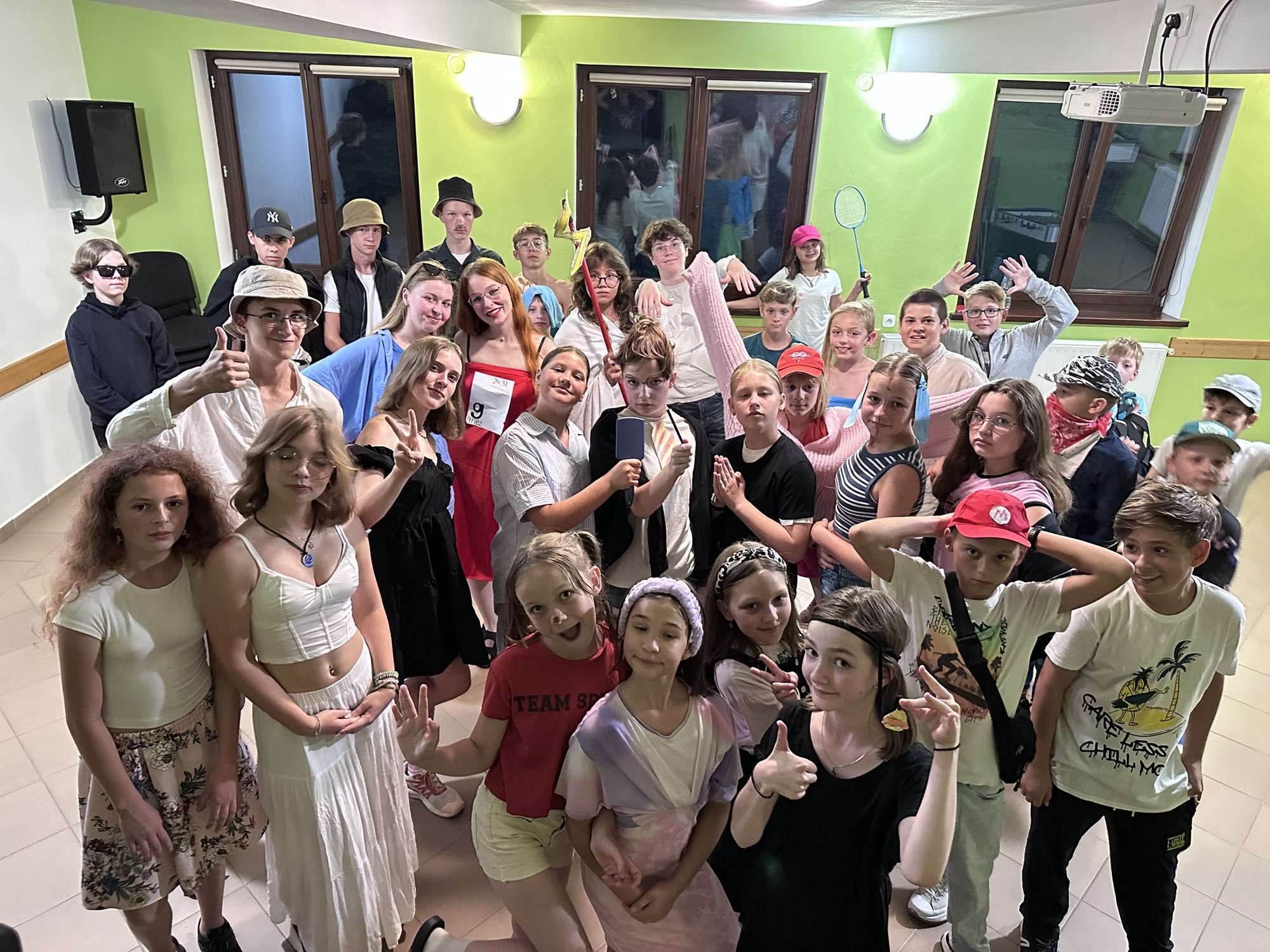 Eksperymentujemy także z teatrem przedmiotu, wykorzystując różne rekwizyty, by rozwijać twórcze myślenie i spojrzeć na scenę w nieoczywisty sposób. Wszystkie te elementy prowadzą do najważniejszego momentu obozu – przygotowania własnej roli i udziału w pokazie finałowym. Każdy uczestnik ma okazję zaprezentować się przed publicznością i poczuć magię sceny, a wszystko to odbywa się pod czujnym okiem pedagoga, który pomaga wydobyć to, co w młodych aktorach najlepsze.